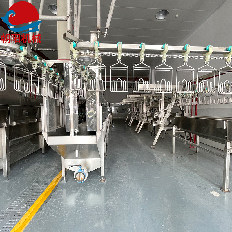 雞宰殺之前,需要人工掛雞,然后用90v電麻機(jī)把雞電麻之后人工宰殺,瀝血,瀝血時(shí)間4-5分鐘,瀝血完成之后進(jìn)入浸燙池浸燙2分鐘左右,浸燙溫度在58-61攝氏度,浸燙溫度可以根據(jù)雞的生長(zhǎng)周期來(lái)調(diào)整溫度,浸燙池的尺寸是根據(jù)客戶的宰殺量來(lái)定制。